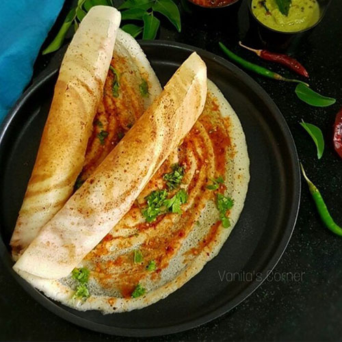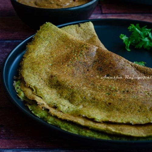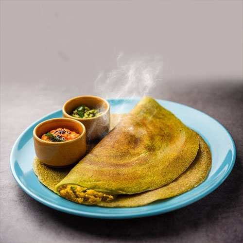 A flavorful South Indian crepe made from green gram lentils and infused with the pungent and aromatic flavor of ginger (allam), offering a delicious and nutritious breakfast option