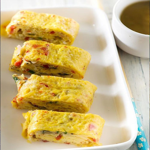 A flavorful variation of the classic omelette made with eggs, filled with a savory mixture of onions, tomatoes, and spices topped with cheese, offering a delicious and hearty break
