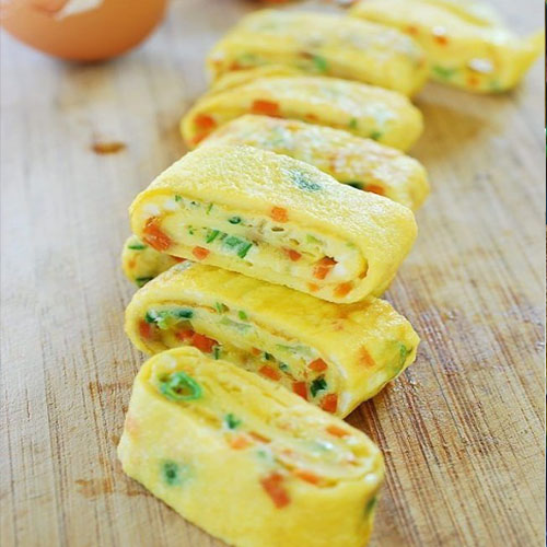 A classic breakfast dish made by whisking eggs and cooking them until firm, offering a versatile and satisfying meal option