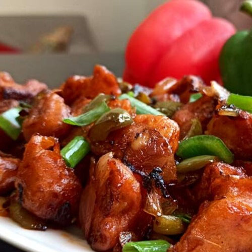 Savor the bold and spicy flavors of Chilli Chicken, a perfect fusion of crispy chicken chunks tossed in a tangy, fiery sauce with crunchy bell peppers, onions, and aromatic spices.