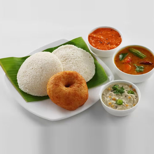Savor the classic Idly Vada—soft, fluffy idlis paired with crispy, golden vadas, served with tangy chutneys and flavorful sambar. A perfect blend of textures and flavors in every