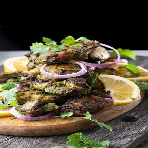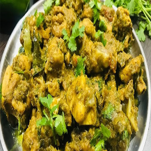 Ignite your taste buds with Pachhimirchi Chicken, a fiery dish featuring tender chicken pieces marinated in a bold green chili paste and cooked to perfection with aromatic spices a