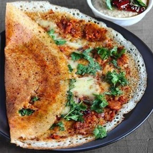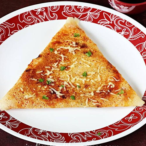 A delectable variation of the classic South Indian dosa, filled with gooey melted cheese and cooked with a generous amount of butter, offering a rich and indulgent taste thats perf