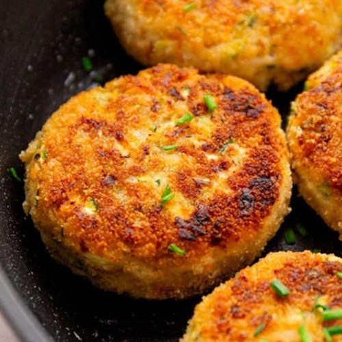 A savory snack made from minced chicken mixed with mashed potatoes, spices, and herbs, shaped into patties, coated in breadcrumbs, and fried until golden and crispy, offering a del