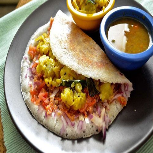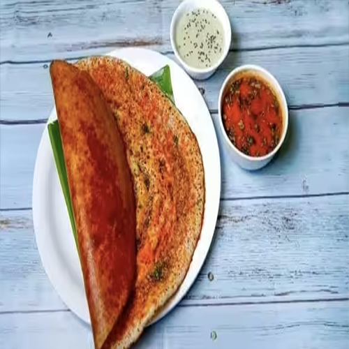 A flavorful South Indian dosa made with ragi (finger millet) flour and topped with a spicy chili paste, offering a nutritious and delicious twist on the traditional dosa with a hin