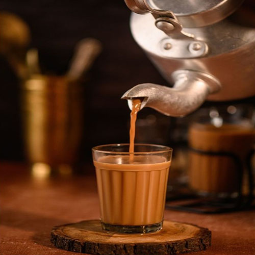 A fragrant and spiced Indian tea made by brewing black tea leaves with aromatic spices like cardamom, cinnamon, cloves, and ginger, simmered in milk and water for a comforting and