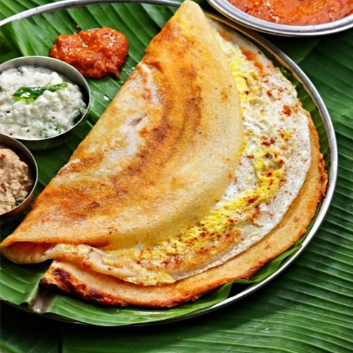 A mouthwatering South Indian dosa made with a single egg cracked onto the hot griddle along with aromatic ghee, house special paste, creating a rich and satisfying breakfast option