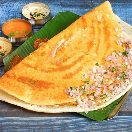 A mouthwatering South Indian dosa made with two eggs cracked onto the hot griddle along with aromatic ghee, house special paste, creating a rich and satisfying breakfast option wit